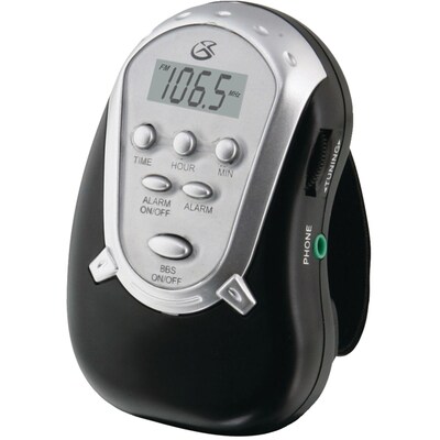 GPX® Portable AM/FM armband radio with analog tuning control has digital clock with alarm and is suitable for indoor/outdoor use.