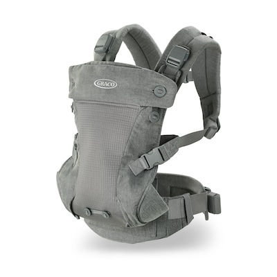 The Graco Cradle Me 4-in-1 Baby Carrier has 4 ways to carry baby, including a newborn seat that doesn't require an insert. The SecureConnect buckles use magnets as a guide and a secure latch to connect, making it easy and secure to get baby in and out! Find the most comfortable mode as baby grows with 4 ways to use: facing-in newborn seat, facing-in baby seat, facing-out baby seat, and back-carry baby seat. Certified "hip-healthy" by the Hip Displaysia Institute, this carrier ensures baby is comfortable in all carry positions. This baby carrier features a breathable mesh front panel to keep baby cool and Oeko-Tex certified fabrics, meaning the materials are certified free from harmful levels of chemical products and is certified STANDARD 100 by OEKO-TEX (20.HUS.40462 | Hohenstein HTTI), meaning the carrier and its components were independently tested for harmful substances. A hideaway, all-season shield keeps baby comfortable year-round and a baby hood provides privacy for resting baby and sun protection. Included organic, washable bibs and harness covers make it easy to clean the parts of the carrier baby loves to drool and chew on the most. Adjustable padded waist and shoulder straps coupled with lumbar support ensure a comfortable fit for parents, too. For use from 8-35 lbs.