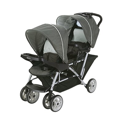 Comfy adventures for two, plus you. The DuoGlider Click Connect Double Strollers has all the essentials a growing family needs. This lightweight double Strollers features stadium-style seating, so the child sitting in the rear is slightly raised for a better view. To keep both passengers nice and comfy, both seats feature a reclining seat, child's tray, rotating canopy and footrest. And for Mom, a one-hand fold, extra large storage basket, and parent's tray. The DuoGlider tandem Strollers accepts two Graco infant car seats, too.
