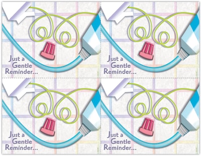 Attention-getting postcard captures your patients attention. The back of the postcard is blank so you can add a personalized message, using your own Laser Printer. Uncoated stock, perforated sheets. Four cards to an 8-1/2" x 11" sheet. 100 cards. Detached size: 4-1/4" x 5-1/2".