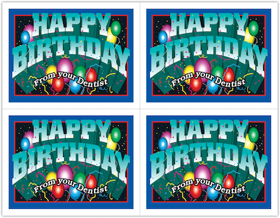 Attention-getting postcard captures your patients attention. The back of the postcard is blank so you can add a personalized message, using your own Laser Printer. Uncoated stock, perforated sheets. Four cards to an 8-1/2" x 11" sheet. 100 cards. Detached size: 4-1/4" x 5-1/2".