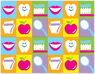 - Attention-getting smile, toothbrush and other dental icons in a grid design