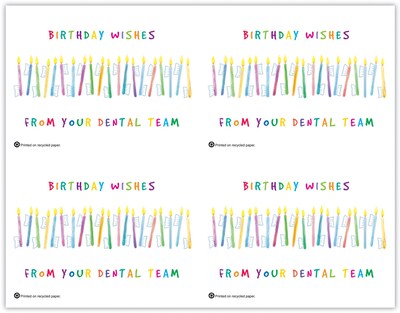Attention-getting postcard captures your patients attention. The back of the postcard is blank so you can add a personalized message, using your own Laser Printer. Uncoated stock, perforated sheets. Four cards to an 8-1/2" x 11" sheet. 100 cards. Detached size: 4-1/4" x 5-1/2".