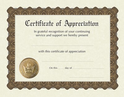 Great Papers! Appreciation Stock Foil Certificate, 8.5" x 11", 6/Pack (930000)