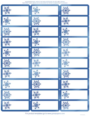 Great Papers!® Blue Foil Snowflake Address Labels Measuring 1" x 2-5/8" each are ideal to dress-up your holiday mailings. Label is compatible with most inkjet and laser printers. Pack contains 4 each 8-1/2" x 11" sheets of 30 up labels for 120 labels total.