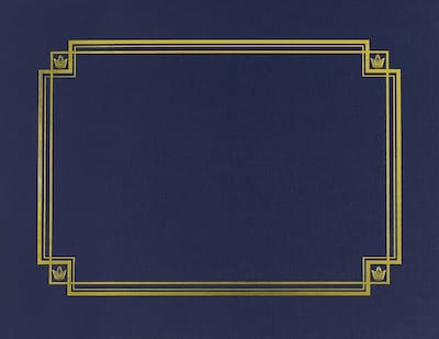 Great Papers® Certificate cover in navy color measures 12 13/20" x 9 3/4" and features embossed gold foil. Cover is die-cut to hold any certificates and is acid as well as lignin free, sold as 3 per pack.