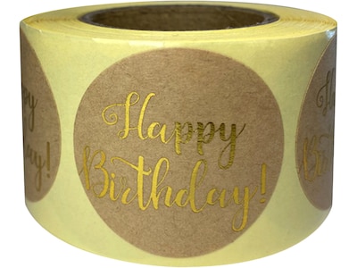 Great Papers! Happy Birthday Stickers, Gold/Kraft, 250/Roll (2020155)