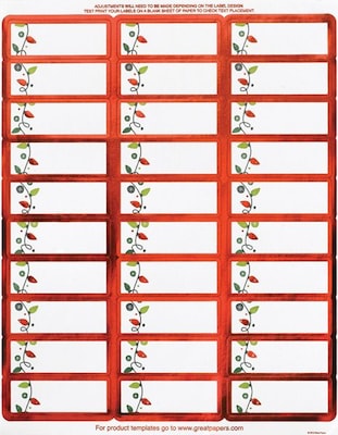 These foil return address labels come formatted on a three-column, 8. 5 x 11-inches page, making it easy to use a word-processing program to lay out your addresses. The pages are compatible with most copiers and inkjet and laser printers, so you have flexible options to get the most out of these holiday labels. Convenient Quantity