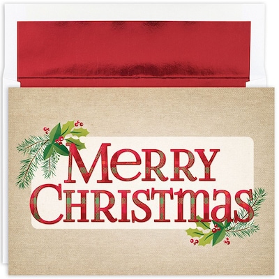 Great Papers!® Holiday Greeting Cards, Plaid Christmas Greetings, 7.875" x 5.625", 18 Cards/18 Foil-Lined Envelopes (902100)