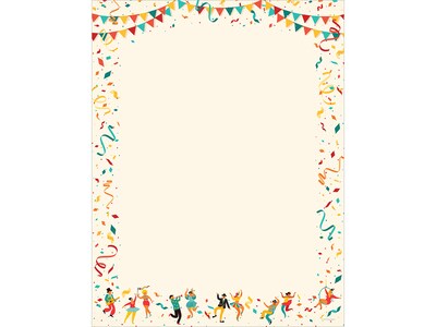 Use this colorful letterhead for sending invitations, announcements, and personal messages. The pack contains 80 sheets of 8.5" x 11" stationery. The Great Papers Mardi Gras letterhead has a 65 lb. paper weight for durability and gives documents a high-quality feel. The blank center offers a space where the text is easily visible. Compatibility with both laser and inkjet printers provides added convenience and versatility.