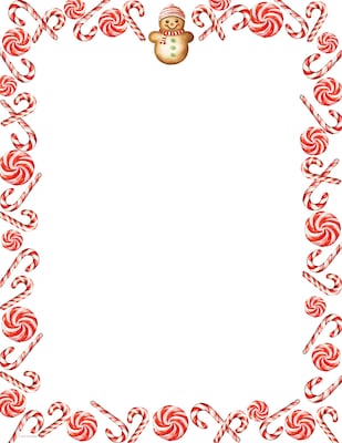 Brighten your holiday messages with this cheerful letterhead featuring a candy cane and peppermint border and a charming snowman at the top. The clean white background provides plenty of space for your message while the festive design adds a fun, wintry touch—perfect for family newsletters, holiday menus, or seasonal announcements.