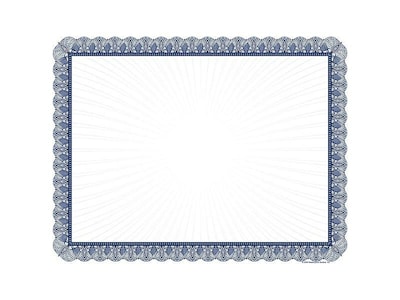 Recognize individuals or groups for great achievements by using this blue-trimmed certificate paper. These acid- and lignin-free certificates resist yellowing, so they can be proudly displayed for years. These Great Papers certificates are bordered with an intricate blue design compatible with both inkjet and laser printers, and this pack of 100 makes it easy and convenient to reward large teams or departments.