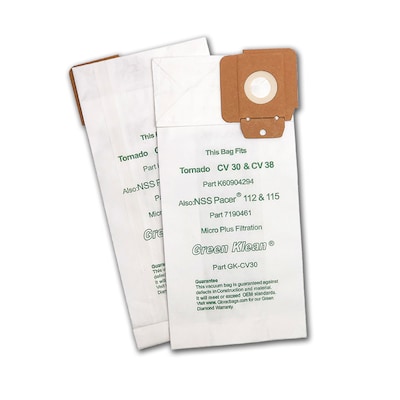 Green Klean® Replacement Vacuum Bags, For Tornado CV30, CV38 12,15, NSS Pacer 112/115, 10/pk