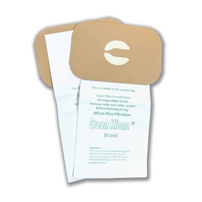 Green Klean Brand superior quality commercial vacuum bags are specifically designed for the Janitorial Professional vacuum cleaners and are backed by the Green Diamond Warranty