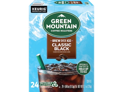 Green Mountain Brew-Over-Ice Classic Black Iced Coffee, Dark Roast, 0.40 oz. Keurig® K-Cup® Pods, 96/Box (390276CT)