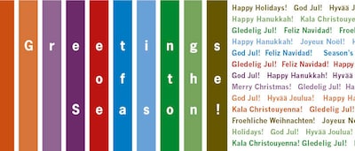 Greetings Of The Season Happy Holidays Languages Holiday Greeting Cards, With A7 Envelopes, 7" x 5", 25 Cards per Set