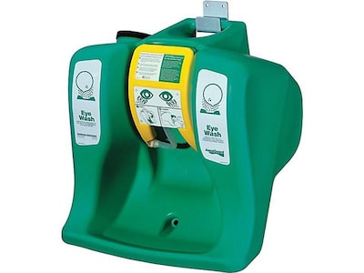 The AquaGuard heavy-duty portable eye wash station holds up to 16 gallons of eye wash fluid, which reduces the risk that it will run dry during an emergency situation. It disperses water through dual spray heads, so you can wash both eyes in a short period of time. Easy Operation