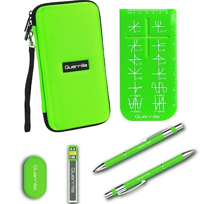 Guerrilla Hard Travel Case for ALL Graphing Calculators + Guerrilla's Essential Calculator Accessory Kit, Green