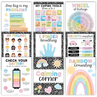 Hadley Designs 11" x 14" Colorful Dark Calming Corner and Feelings Chart Posters, 9/Set (HDDX004AHGC9D)