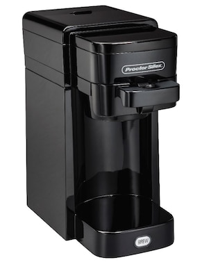 Hamilton Beach® Proctor Silex black 10 oz. coffee maker uses single-serve packs or ground coffee and compatible with any K-cup pack.