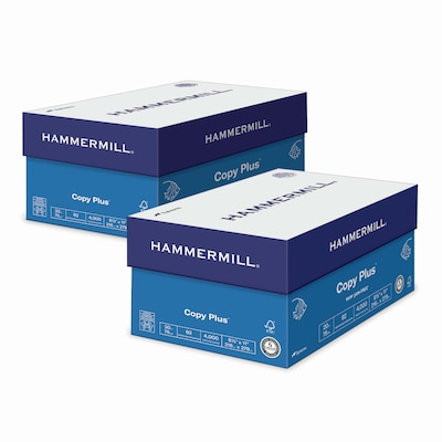 Hammermill Copy Plus 8.5" x 11" Copy Paper, 20 lbs., 92 Brightness, 500 Sheets/Ream, 8 Reams/Carton, 2 Cartons/Deal, 16 Reams