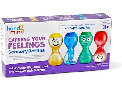 Provide children with quiet, self-directed, tangible ways to identify how they're feeling, release the energy those feelings create, and calm down with the hand2mind Express Your Feelings sensory bottles. Each bottle features a unique emotion, color, and interactive element that ties to one of four emotions: happy, angry, scared, and sad.