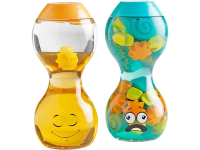 Featuring Overwhelmed and Calm, this hand2mind Express Your Feelings set of two sensory bottles helps children learn how one emotion can transition into another. Each bottle is uniquely designed with its own facial expression, color, and interactive element that embodies the feeling. These delightful bottles will engage children and provide them with a hands-on way to focus on and manage their feelings.