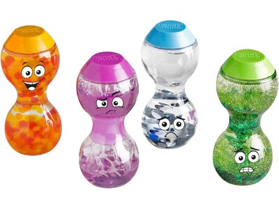 This set extends the hand2mind's best-selling Express Your Feelings sensory bottles with even more feelings! Featuring Excited, Impatient, Lonely, and Nervous, each bottle is uniquely designed with its own facial expression, color, and interactive element that embodies the feeling. These delightful bottles will engage children and provide them with a hands-on way to focus on and manage their feelings.