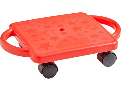 Kids can scoot, glide, and roll around the room while building core strength and coordination on this handled scooter board by hand2mind. Made of durable plastic, the board is easily cleaned and has plastic wheels that won't damage floors. Handles keep fingers safe while providing steering and control of the board.