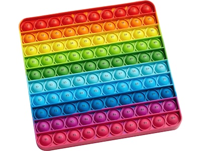 Explore numbers, arrays, and other basic math skills using this hand2mind hundred board sensory bubble popper! Leverage the front side as a hundred board to learn about numbers from 1 to 100. Flip it over to practice addition, multiplication, and geometry on the colorful 10 x 10 grid.