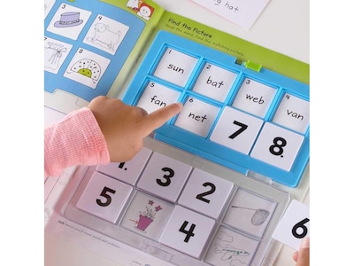 Bob Books from hand2mind offer repetition and fun stories to introduce important sight words. Consistent short vowels and simple stories ensure that each book is a gentle step into early reading. Alongside these books, students can practice the skills they are learning by doing activities in their VersaTiles workbook. This tried and true practice system creates a hands-on way of reviewing what they are learning in their Bob Books. Simply line up the puzzle-like answer case on top of the page in the book, and line the tiles up on top to start. Pick up each tile 1-8 and answer the question underneath it. Once each tile is placed, close the case, flip it over, and see if the pattern matches what is in the bottom right corner of the workbook page. This practice is what helps students to comprehend what they are learning and gives them confidence in their reading abilities.