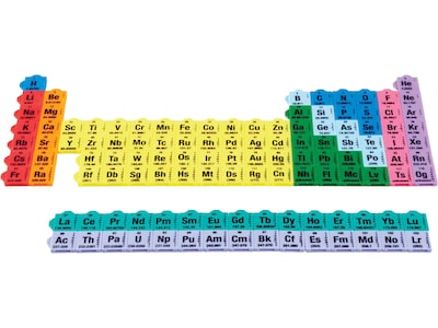 This hand2mind hands-on set simplifies the learning of complex chemistry concepts in a fun and interactive way. The plastic tiles snap together to form a complete periodic table of the elements. Each 1" x 1" color-coded tile is printed with the atomic number, atomic symbol, atomic weight, and electron ring configuration for each of the elements.