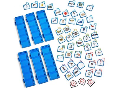 - Package contains: 44 double-sided sound tiles, 44 dividers, 220 double-sided picture tiles that show five uses of each of the 44 sounds, three NO tiles, and six sorting trays