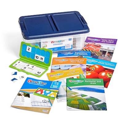 The VersaTiles Math Differentiation Kit provides access to all of the Student Activity Books for grades 1-6. This uniquely designed kit allows teachers to differentiate for below grade-level intervention as well as above grade-level enrichment. What you love about VersaTiles hasn't changed. It's the captivating challenge of a puzzle with the purposeful practice of an activity book. All new VersaTiles Math includes new and updated content in an exciting, full color format that encourages students to explore. Provide students with the flexibility for task centers, independent or partner work, or one-on-one tutoring/remediation. Focus on the foundational skills and concept. Includes: - 36 Student Activity Books (1 copy of each of the six titles per grade level, 32-pages each) - 4 Answer Cases - 1 Teacher Guide - Storage Tote. For over 50 years, hand2mind has encouraged hands-on learning and discovery, driving deeper understanding and helping children unlock their full potential. Hand2mind specializes in math manipulatives designed to help students learn by doing. VersaTiles helps students practice math hands-on with it's self-checking workbook system. From early math to middle school math, hand2mind has you covered with products designed to enhance learning in the classroom and the world around us. Through hands-on exploration and discovery we strive to find new ways to encourage students in math practice, literacy activities, STEM education and more!