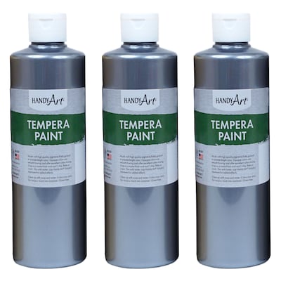 Handy Art® Metallic Tempera Paint, Silver, 16 oz. Bottle, Pack of 3 (RPC231166-3)