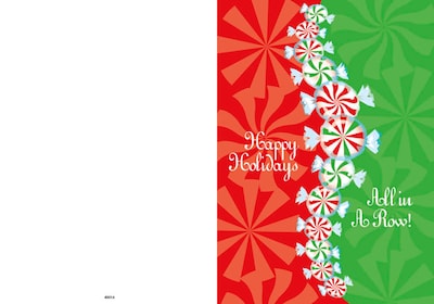 Happy Holidays - all in a row - candy - 7 x 10 scored for folding to 7 x 5, 25 cards w/A7 envelopes per set