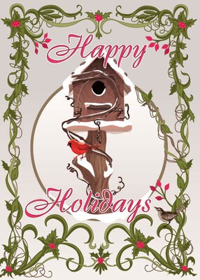 Happy Holidays Cardinal And Bird House Holiday Greeting Cards, With A7 Envelopes, 7 x 5, 25 Cards per Set
