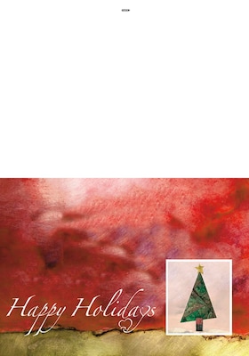 Happy Holidays cut out christmas tree - 7 x 10 scored for folding to 7 x 5, 25 cards w/A7 envelopes per set