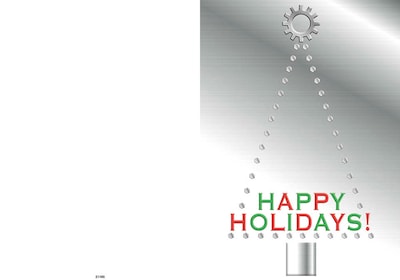 Happy Holidays - dotted christmas tree with gear - 7 x 10 scored for folding to 7 x 5, 25 cards w/A7 envelopes per set