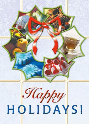 Happy Holidays Food Wreath Holiday Greeting Cards, With A7 Envelopes, 7" x 5", 25 Cards per Set