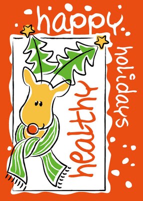 Happy Holidays Healthy Reindeer Holiday Greeting Cards, With A7 Envelopes, 7" x 5", 25 Cards per Set