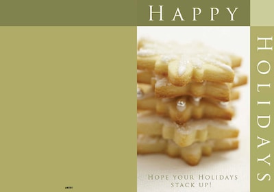 Happy Holidays - hope your holidays stack up - cookies - 7 x 10 scored for folding to 7 x 5, 25 cards w/A7 envelopes per set
