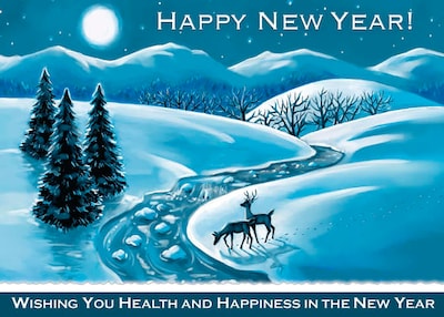 Happy New Year Wishing You Health and Happiness Greetings Cards, With A7 Envelopes, 7" x 5", 25 Cards per Set