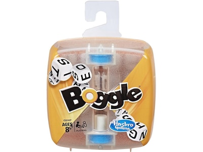 Earn points by spotting words your friends don't before time runs out. Shake the grid to mix up the letter cubes. Then lift the lid and flip the timer. Players have 90 seconds to write down as many words as they can find on the grid before time is up. At the end of the round, score the words. If two or more players find the same word, that word doesn't count. The player with the highest score wins. Game comes in an easy-to-store travel case for both timer and dice.