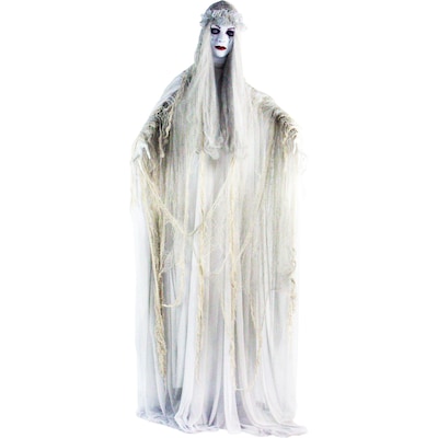 - 5.6 ft. animatronic haunted bride for indoor and covered outdoor display