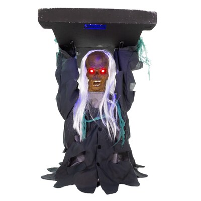 Partnering with Tekky Toys, a leader in premium Halloween animatronics, we bring you our assortment of past best sellers now exclusively available through Haunted Hill Farm. These sound-activated, lifesize props are designed with high quality details and realism for the perfect addition to your scary Halloween decor. The Tombstone Lifter will give guests the fright of their lives with a single glance. His animated body will start lifting the tombstone when a loud sound is detected while his red LED light eyes glow, giving him a sinister stare. Various evil moans and laughter will chase off trick-or-treaters throughout the night. Convenient battery operation allows you to place this prop wherever you choose without needing to worry about the proximity to an electrical outlet. For longer prop life, we recommend indoor or sheltered outdoor use protected from inclement weather. This animatronic prop will be great in your own haunted house with a focus on high quality materials, engaging details, and gruesome realism. Choose the Tombstone Lifter to create a unique spooky display near the front door, on your porch, at the office, or inside your home to scare your family, friends, and neighbors.