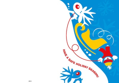 Have a safe Holiday Season - sleigh and reindeer - 7 x 10 scored for folding to 7 x 5, 25 cards w/A7 envelopes per set
