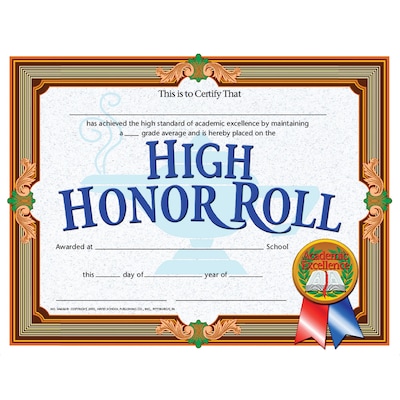 Hayes High Honor Roll Certificate, 8.5" x 11", Pack of 30 (H-VA586)