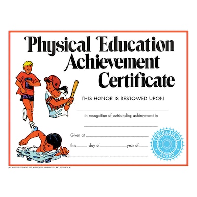 Hayes Physical Education Achievement Certificate, 8.5" x 11", Pack of 30 (H-VA195CL)