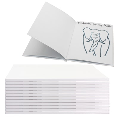 Hardcover Blank Books are great for easy and fun activities. Create your own book, draw pictures, document an event, or even use it as a journal. This is a portrait styled blank book and it comes in a set of 12. These books are in portrait format measuring 8.5" x 11". 14 Sheets/28 Pages on 80# bright white paper.